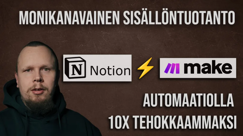 Monikanavainen sisällöntuotanto voidaan tehokkaasti automatisoida käyttämällä Notionia keskuspaikkana ja hyödyntämällä tekoälyä sisällön luomisessa. Tämä säästää aikaa ja mahdollistaa johdonmukaisen läsnäolon useilla alustoilla.
